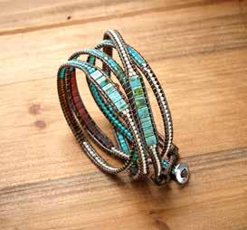 Pacifico Wrap Handcra ed by a co ective of Fair Trade artisans, this wrap bracelet is made of one long, rugged leather strand interspersed with antiqued metal spacer beads, wrapped leather lacing, and waxed thread in subtle pops of dark and light blue. Loop and metal bu on closure. Imported in Multi. 24" long. Approx. 8 ½" wrapped. One size ts most. [ 188382 ] $34