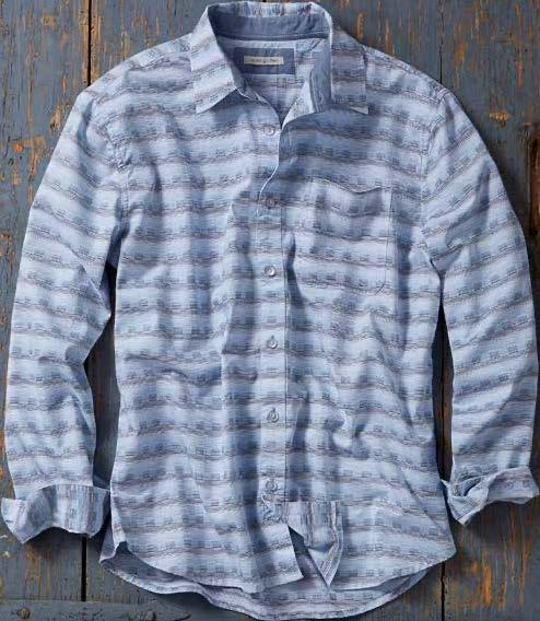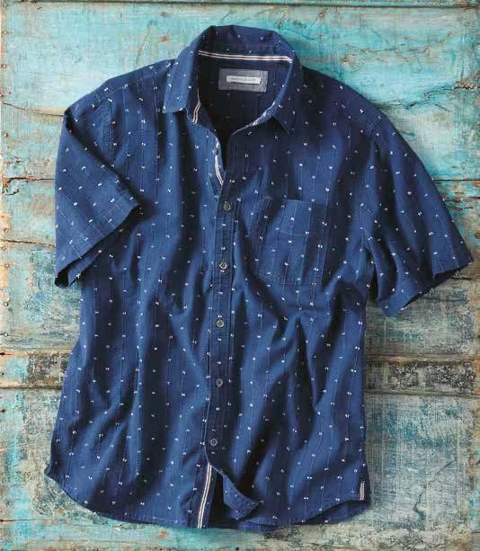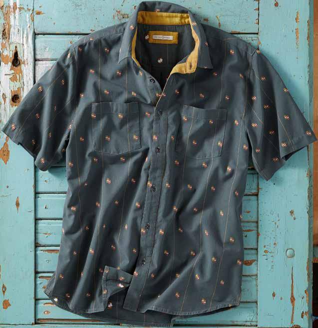 With its vintage-modern aesthetic, this shirt is evocative of a nigh ime drive. e geometric dobby thread pa ern is accented with contrast fabric on the inside for additional brightness. 100% co on. Imported in Multi. Men’s sizes: S-XXL. [ 133781 ] $79