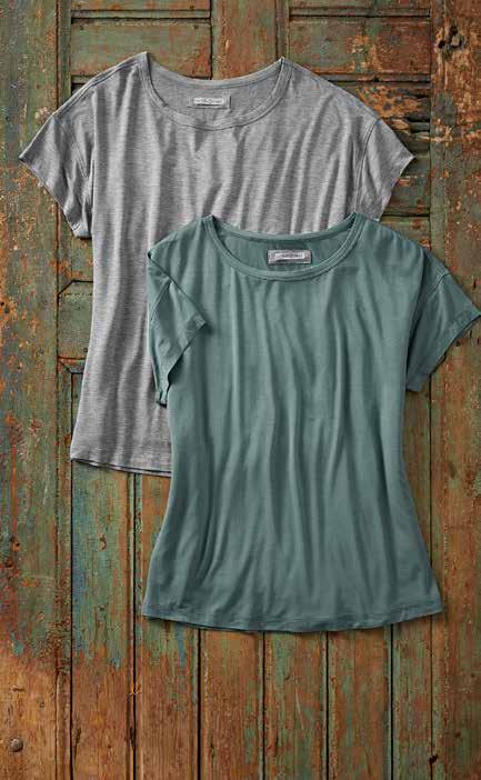 CAPSULE TEE Peachy soft with a substantial feel, this is your anywhere, anytime, all-season tee. Featuring an open crewneck and a flattering dolman sleeve, we suggest collecting all colors. Slightly boxy, relaxed fit. 100% cotton. Imported in Salmon, Navy, Mustard, Eucalyptus, White, or Granite. Women’s sizes: XS-XL. [ 344111 ] $4 9