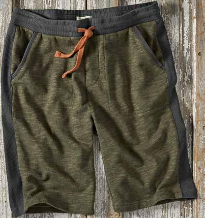 Parameter Shorts e knit short spruces up. Made of a so , substantial slub fabric for a re ned look and feel, they feature rib-knit side panels to give them range of motion and keep their shape. Contrast drawcord. Front slash pockets. Single drop-in welt pocket at the back. Elastic waistband. Pu -on styling. 10" inseam. 60% co on, 40% poly. Imported in Walnut. Men’s sizes: S-XXL. [ 128079 ] $89