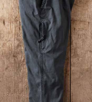 A Cut Above Khaki It’s time for a be er-built khaki. Designed for your satisfaction with a trimmer t and a so -washed textural fabric. Durable a -co on Bedford fabric is turned on its side and given a long so wash. Welt coin pocket and side ce slot. Chambray chain stitch contrast found inside waistband. So plaid lines the pockets. Imported in Cerulean Blue, British Khaki (thrown on page 29) or Granite (thrown on page 9). Men’s sizes 30-40 (even) also 33 and 35 a with 32" inseam.