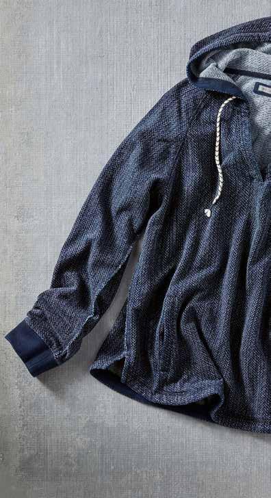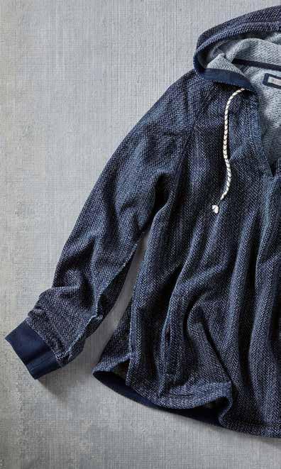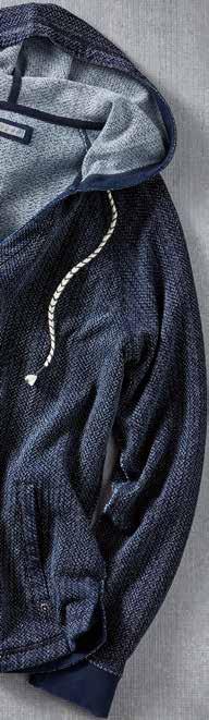 Made of soft jacquard terry with a perfect mid-weight feel, this is the layer to chase the lingering chill. Freshened up in ocean blue with unique nautical-inspired details (see the braided chevron stripe drawcord). Kangaroo pocket and flattering curved hem with side vents. 95% cotton, 5% poly body. Imported in Indigo.
