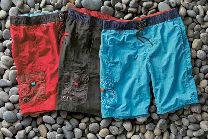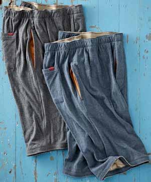 DAYBREAK LOUNGERS Whether you're kicking back at the campfire, the back yard or catching z’s in a hammock, these knit shorts will become steady companions. Made of soft jersey, they have an elastic waistband, side seam pockets, and a single open back pocket. Drawcord and single-button fly. 100% cotton. Imported in Charcoal or Blue. Men’s sizes: S-XXL. [188559] $69