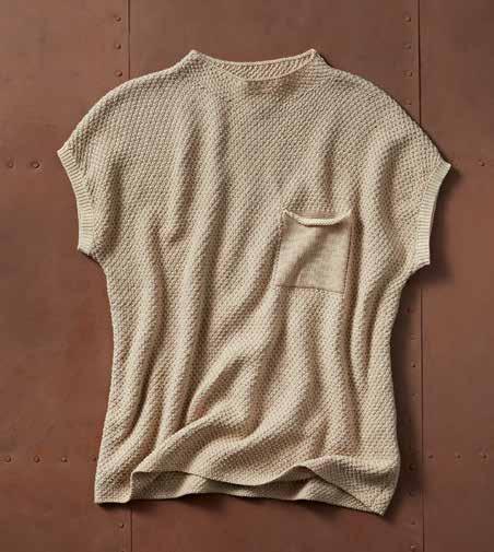 the subtle vintage vibe and the open seed stitch design that offers breathability — dolman cap sleeves keep it cool, too. Flattering relaxed mock neck and jersey patch pocket with roll trim. 100% cotton. Imported in Sand. Women’s sizes: XS-XL. [355099] $ 89