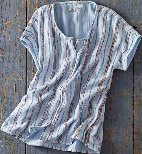 Soft and airy, this double-cloth dobby top features a beachy stripe motif on the outside and a smooth solid fabric panel on the inside. 100% cotton. Imported in Multi. Women’s Sizes: XS-XL. [333125] $ 89