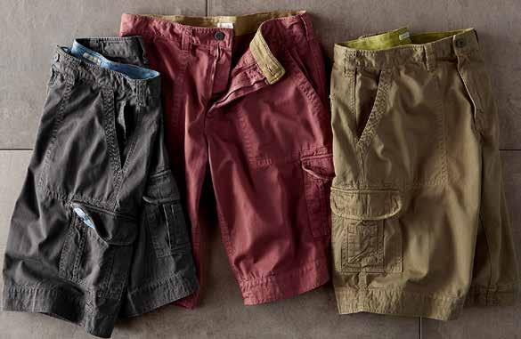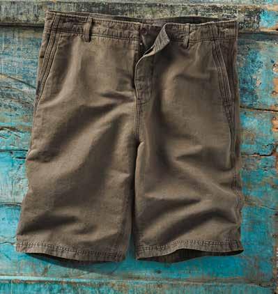 BREAKWATER SHORTS Made of cotton slub canvas and linen, these shorts offer a great mix of ruggedness and breathability. Washed down to an old-favorite soft drape, the slightly distressed appearance of the fabric only adds to the character. Front slash pockets and two drop-in welt pockets at the back. Zip fly. 10" inseam. 58% linen, 42% cotton. Imported in Walnut. Men’s sizes 30-40 (even) also 33 and 35. [122096] $89
