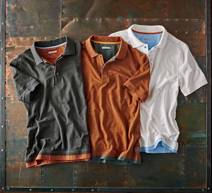 TINTED POLO We love denim, and if you know us, you know it inspires many of our design details. Case in point: this polo made of nicely weighted, finely textured jersey that’s been over-dyed to give it a jean-inspired “wash.” We finished it with chambray trim under the rib-knit collar and inner 4-button placket. Single drop-in pocket. 100% cotton. Imported in Indigo or Coal. Men’s sizes: S-XXL. [144558] $79