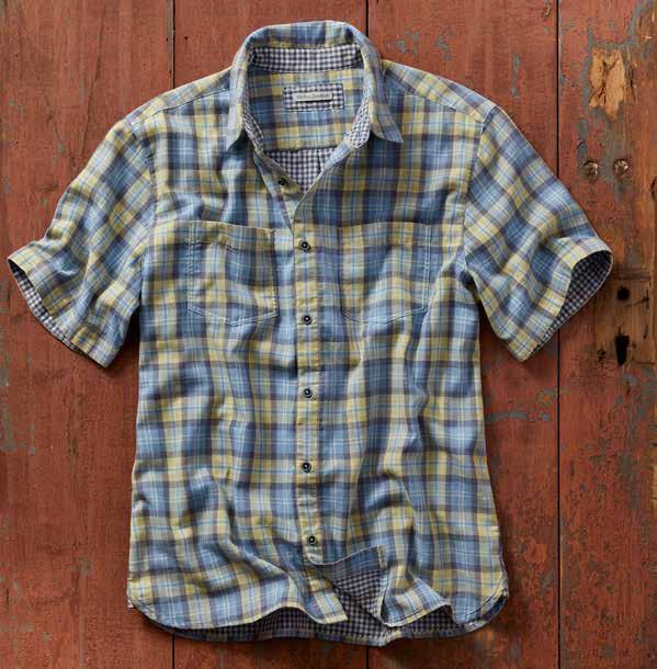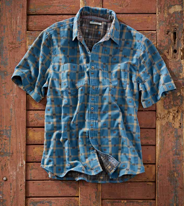 We don’t know what we love more, the rustic colors reminiscent of sunbaked tiles or the soft, lightweight feel of this double cloth. With a plaid on the outside and a fine ticking stripe inside, it’s coollooking throughout. Chambray trims the inner collar and button placket binding. Single drop-in chest pocket. 100% cotton. Imported in Multi. Men’s sizes: S-XXL. [133817] $89