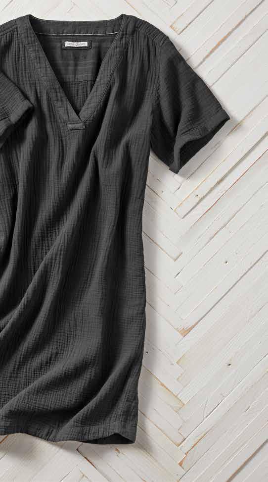 The LBD, C2C-style. Made with our signature double-cloth fabric, this is your wear-everywhere dress. Made of two lightweight panels of gauzy cotton, it has a slightly puckered, pillowy feel that’s ideal for warm weather. Flattering crossover v-neckline and curved hem. 100% cotton. Imported in Black. [366004] $8 9