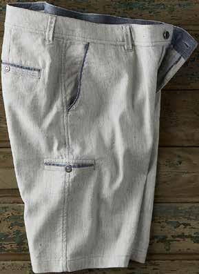 PANACHE SHORTS Blending fabric with a sophisticated, slub-like texture we found in Europe with a classic short design, these shorts are equally relaxed and refined — and completely comfortable thanks to the stretch content. Front slash- and back welt pockets plus a single welted cargo pocket are all trimmed with contrast chambray fabric. 10" inseam. 51% cotton, 47% linen, 2% elastane. Imported in Soft Blue/Putty. Men’s Sizes: 30-40 (even) also 33 and 35. [122058] $89