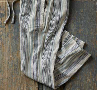 Soft and supple, with finely textured, sun-washed stripes, it’s near impossible to not feel relaxed when you put these pants on. Smooth draping, they have a comfy elastic waistband with a built-in drawcord. On-seam and back pockets. Medium rise. Easy, slightly tapered leg can be rolled to ankle length. Faux fly. 30" inseam. 100% cotton. Imported in Multi. Women’s Sizes: XS-XL [325015] $ 89