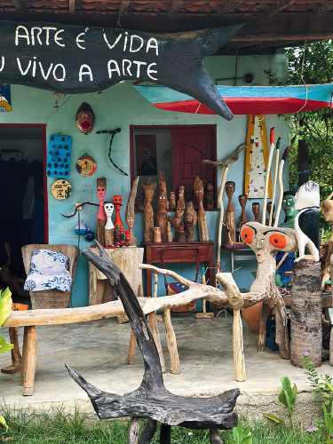 EM SENTIDO HORÁRIO: No Rio, onde moro atualmente, a Legado é minha loja de design favorita. Com uma curadoria impecável, reúne tesouros do século 20 e verdadeiras joias de designers contemporâneos. / Gosto de usar marcas que representam as criações de amigas talentosas, como a Irrita, no Brasil, e a Les Prairies de Paris. Esta última, uma miniloja com atmosfera de cabinet de curiosités, é a quintessência da elegância parisiense contemporânea. E fca perto do Jardin du Luxembourg. / Foi por meio da Galeria Passado Composto que me apaixonei pela tapeçaria. A loja paulistana é uma verdadeira guardiã da arte da tapeçaria modernista brasileira. / O livro On Weaving, de Anni Albers, é uma referência absoluta na arte da tecelagem, que também me serviu como inspiração. / Adorava fazer minhas compras no empório Yaoya, uma experiência quase iniciática entre o País Basco e o Japão. / Durante os anos em que morei no País Basco, o café Providence Moments & Goods era meu ponto de encontro favorito, um local imperdível para surfstas e amantes da gastronomia, refetindo perfeitamente a arte de viver basca. / Outro trabalho que admiro é o da ceramista Ludmilla Balkis: ela traduz a essência do País Basco em suas obras, explorando a interação entre formas orgânicas e materiais naturais. Suas peças capturam as paisagens e a cultura que a inspiram. / Aos poucos, fui me aprofundando no tema e esse movimento ganhou ainda mais força quando descobri a tradição secular da tapeçaria peruana no Museu Amano, em Lima. / Em Biarritz, sempre que posso, faço questão de visitar a Galeria Belus Horia. A curadoria de objetos de brocante - antiguidades e artigos raros - é maravilhosa.