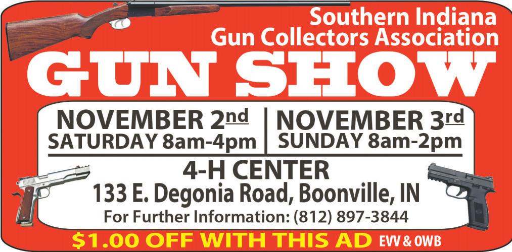 GUN SHOW Saturday, October 26 9am-5pm. Sunday, October 27, 9am-3pm. Huntingburg Event & Community Center, 110 E. 14th St. Huntingburg, IN Admission $8. Call for more info. 812-4833064