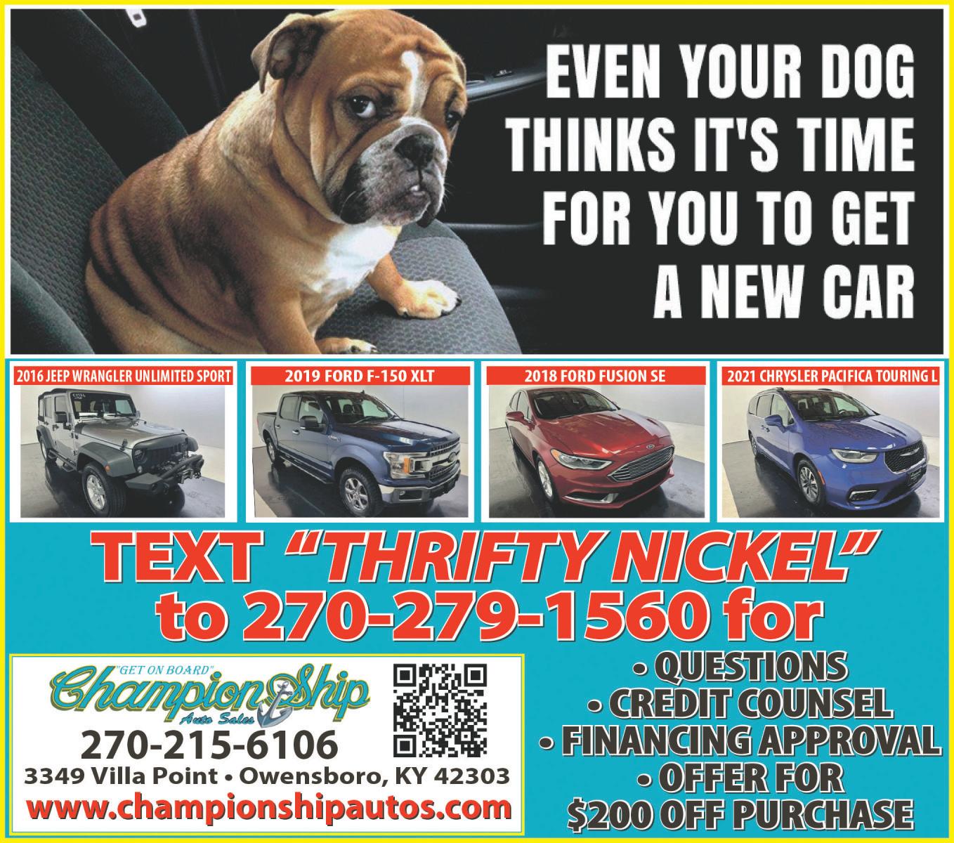 YOU CAN’T FIND a better advertising tool than at your Thrifty Nickel. Place a 15 word classified ad for only $20 for 4 weeks. Call today, 270-683-5557 or 812428-8484.
