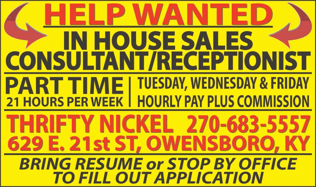 are at your Thrifty Nickel! We will get you results! Place a 15 word classified ad for 4 weeks @ $20. Call today, 270-6835557 or 812-428-8484.