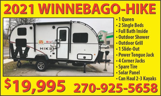 290k miles, white, clean title, runs & drives, original owner, $1,500, 270-302-5261 GMC 2007 2500 HD, 812423-9265. GMC 2010 Sierra 3500HD SLE, Crew Cab, 4x4, $25,900. 270-826-7900. GMC 2011 Terrain SLT, $4,800. 812-423-9265. GMC 2015 Terrain SLT, 100k, FWD, loaded, $15,995. 270-926-4702. GMC 2016 Canyon Crew Cab SLT 4x4, 4-door, lift kit, 66k, loaded, $22,900. Will Take Trades, Financing Available. 270-213-0284. GMC 2017 Acadia, $9,500. 812-423-9265. H H O O N N D D A A HONDA 2007 Pilot EX AWD, 160k, $1,000/down. 270-926-4702. HONDA 2020 CRV EX, AWD, 35k, $27,995. 270926-4702. H H Y Y U U N N D D A A II HYUNDAI 2013 Sonata SE, $6495. 270-686-3456. J J E E E E P P JEEP 2009 Patriot, pw, pl, 270-691-9393 JEEP 2011 Cherokee, 270-240-4365. JEEP 2014 Compass 4x4, $1,000/down. 270-9264702. JEEP 2014 Grand Cherokee, 134k, $15,990. 270-685-1638. JEEP 2015 Patriot Sport, $6995. 270-686-3456. JEEP 2018 Wrangler, 270240-4365. EMAIL YOUR AD to Thrifty Nickel at classifieds@owens.twcbc.com M M A A Z Z D D A A MAZDA 2016 CX-5, 66K miles, $13,950. 812-4024662 M M II T T S S U U B B II S S H H II MITSUBISHI 2013 Outlander, 270-240-4365. MITSUBISHI 2017 Outlander Sport, 270-2404365. N N II S S S S A A N N NISSAN 2013 Frontier, 270-240-4365. S S U U B B A A R R U U SUBARU 2013 Outback 2.5I Premium, AWD, leather, loaded, $5,900. 270-8267900. T T O O Y Y O O T T A A TOYOTA 1997 Rav-4, 4x4, $2,500, 270-684-3889 TOYOTA 2020 Highlander, 270-240-4365. V V O O L L V V O O VOLVO 2013 XC60, 3.2 AWD, 4WD, 4dr, SUV $5,995, 812-423-9265. D D O O D D G G E E DODGE 2010 Grand Caravan SE, 119k, $6,650. 812-423-9265. DODGE 2011 Caravan, 812-423-9265. DODGE 2019 Caravan SXT, loaded, $14,900. 270826-7900. EZ AUTO SALES & PARTS, 1008 Omega St., Owensboro. We buy any cars, new after-market Parts, used parts, Tires. Auto repair available. 270-5411950. F F O O R R D D FORD 2012 E350, 1 ton van, 188K, good shape, $9,250. 317-418-1340 H H O O N N D D A A HONDA 2018 Odyssey /month, Touring, DVD player, sunroof, $379/ month. 812421-8861 WE ARE THE BEST at getting you results!! Let us show you by placing a classified ad with Thrifty Nickel! 15 words or less, 4 weeks @ $20. Call today, 270-6835557 or 812-428-8484. 17” FACTORY Aluminum Wheels off a 2009 Dodge truck, $200, 270-282-3110. AUTO REPAIR you can count on, by people you can trust. Call Moore’s Auto Electric 270-240-1343. COLD A/C in your vehicle? If not, we can help! Call Moore’s Auto Electric 270240-1343. EZ AUTO SALES & PARTS, 1008 Omega St., Owensboro. We buy any cars, new after-market Parts, used parts, Tires. Auto repair available. 270-5411950. LIFT KITS, Wheels, Tires. Lanham Offroad Accessories, 270-231-8155. MATTINGLY’S AUTOMOTIVE REPAIR, 2405 Veach Rd., Owensboro. Jasper engines & transmissions, alignment, brakes, tune-ups. 270-683-4251 or 270-684-0719. QUALITY AUTO Repair: brakes, air conditioning, shocks/struts, engine/warning light issues, power windows, electrical repair, tuneups, oil changes, & more. Call Moore’s Auto Electric 270-240-1343. SET OF 4 Mastercraft LT 285/55R tires on 20” Fuel Assault 6 lug, fits F150, Nissan, & Toyota. $2,100. 270-836-4682 SPECIAL!!! FREE multipoint inspection with oil change. Also, brakes, tuneups, A/C problems, & more. Call Moore’s Auto Electric 270-240-1343. 2010 KEYSTONE Cougar 5th Wheel, 37 1/2’ long, half ton pullable, Polar Plus Package, 3x20 slide out, large awning, new battery, am/fm radio, inside/outside speakers, DVD player, TV, solid cherry cabinets, very nice, $13,000. Call 618-8396612 2014 THOR ACE 30.1 V10 Triton, 48,917 miles, super slide in living area, slide in bedrom, Onan 4000 quiet genrator, $45,000, 270-836-4124 2019 GRAND Design Solitude 35’ 5TH Wheel, 5 awnings, 3 slide outs, fireplace, island kitchen, washer / dryer, 2 recliners, sofa bed, side by side, refrigerator, queen bed, 2 TV’s, book value $59,900, asking $52,900, 270-925-5658 2021 WINNEBAGOHIKE 1 queen, 2 single beds, full bath inside, outdoor grill, outdoor shower, 1 slide-out, power tongue jack, 4 corner jacks, spare tire, solar panel, can haul 2 to 3 kayaks, $19,995, 270925-5658 CAMPER POP-UP Rockwood, M1950, 2013, excellent, sleeps 6, range, fridge, screen patio, $2,995, 270-925-9462 ★★★★ WANTED TO BUY RV s, Motorhomes, Campers, Trailers of all types, Old School Buses, Golf Carts. Any condition OK. 812-455-4503 2008 HARLEY Davidson FLHP Road King, black, 100th Anniversary of service, 103 motor with stage two kit, new clutches, new S&S header & new tires. Rebuild has less than 500 miles on it. I have a clear title and all paperwork on this bike. Very nice motorcycle just don’t have time to enjoy it anymore. Call Bruce 812431-1435 MOORE’S AUTO ELECTRIC • GENERAL AUTO REPAIR • 1220 Burlew Blvd.,Owensboro, KY • 270-240-1343 *Tune-Ups *Oil Changes & More *Brakes *Air Conditioning *Shocks/Struts *Engine/Warning Light Issues MOORE’S AUTO ELECTRIC • Starters & Alternators For Auto, Farm & Industrial • Repaired • Rebuilt • Brand New • Vehicle Electrical Repair • Lighting Issues • Wiring • Power Windows • Power Door Locks • Key-Off Drains, Etc... TRUCK PARTS NEW - USED - REBUILT MOTORS - TRANS - DOORS - CABS 10 ACRES USED PARTS PICK-UP, KW, MACK 270-316-7057 • 270-275-1850 Parts, Sales & Service Owensboro Truck Sales, Inc. Truck & Equipment Sales