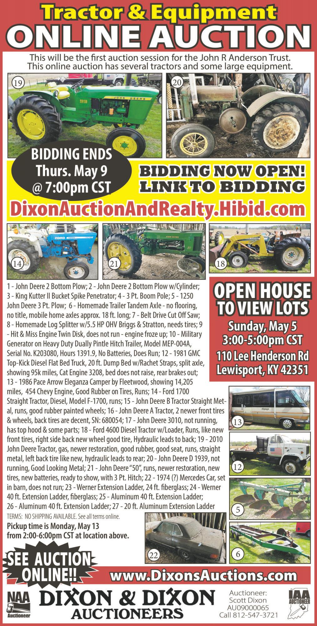 Tough enough for your stuff but won’t break the budget. All wood construction, ball-bearing slides. In stock or made to order. Cabinet Doors & More, LLC., Hwy 54 in Fordsville. 270-276-3545. QUALITY AUTO Repair: brakes, air conditioning, shocks/struts, engine/warning light issues, power windows, electrical repair, tuneups, oil changes, & more. Call Moore’s Auto Electric 270-240-1343. MATTINGLY’S AUTOMOTIVE REPAIR, 2405 Veach Rd., Owensboro. Jasper engines & transmissions, alignment, brakes, tune-ups. 270-683-4251 or 270-684-0719. MASONRY SAW $150. 2 Wheel Trailer 4ft.x8ft. $325. Small metal trailer. 270-7299128 A CITIZENS ROOFING Specializing in roofing & gutters. Residential & Commercial. Financing Available. Free Estimates. 812-428-2343 AUTO REPAIR you can count on, by people you can trust. Call Moore’s Auto Electric 270-240-1343. FIBERGLASS UNDERGROUND /SAFE ROOMS/ DRIVE OVER FLOOR MODELS. Underground models seats 4-20. Safe room model seats 2-100. Garage Floor model seats 6 person. Lifetime warranty. Tested at Texas Tech to withstand greater than F5. Integrity Storm Shelters 812-6770010. EMAIL YOUR AD to Thrifty Nickel at classifieds@owens.twcbc.com #1 FOR 41 YEARS that’s what we are at your Thrifty Nickel! We will get you results! Place a 15 word classified ad for 4 weeks @ $20. Call today, 270-6835557 or 812-428-8484. TIM & TIM’S CRANE SERVICE Includes Tree Removal & Trimming, Pressure Washing, Cleaning Gutters, & Mowing. Free Estimates. 270-841-7315 WANT RESULTS? Call your Thrifty Nickel today & place a classified ad for only $20 for 15 words, for 4 weeks! Call today, 270-6835557 or 812-428-8484. Page 2 SEE OUR DIGITALEDITION WWW.TRISTATETHRIFTYNICKEL.COM April 25, 2024 E-MAILADDRESS: classifieds@owens.twcbc.com tristatethriftynickel@yahoo.com WEB-SITE ADDRESS: www.tristatethriftynickel.com Thrifty Nickel reserves the right to refuse any ad. Thrifty Nickel shall not be liable for failure to publish an ad or typographical error or errors in publication except to the cost of that portion of the ad wherein the error occurred. For error, omissions, or failure of an ad to appear, you must notify Thrifty Nickel within 5 days of publication.Thrifty Nickel shall not be responsible for any content of an ad placed by our advertisers. DEADLINES MONDAY.................9AM-5PM TUESDAY................9AM-5PM WEDNESDAY...........CLOSED THURSDAY............9AM-5PM FRIDAY...................9AM-2PM OFFICE.......270-683-5557 OFFICE.......812-428-8484 FAX..............270-683-5689 BUSINESS & S SERVICE INDEX HOW T TO P PLACE A C CLASSIFIED A AD PHONE N NUMBERS NEW O OFFICE H HOURS Tri State Thrifty Nickel Classified Classified Ho Ho tline 270-683-5557 or 812-428-8484 Anitques/Collectibles . . . 4A Auctions . . . . . . . . . . . . . . Bus./Emp. Opportunities .4A Clothing & Accessories . . Community Calendar . . . 4A Computers/Electronics . . 3A Farm/Heavy Duty Eq . . . . 3A Financial . . . . . . . . . . . . . Furniture & Appliances . . 3A Garage Sales . . . . . . . . . . 3A Lawn & Garden . . . . . . . .3A L egal Notice . . . . . . . . . . Medical/Health . . . . . . . . Miscellaneous . . . . . . . .1-3A Musical Equipment . . . . . Pets & Animals . . . . . . . . 4A Homes/Land For Sale . . 6A Mobile Homes . . . . . . . . . Mobile Home Parts . . . . 3A Real Estate Wanted . . . . 6A Rent . . . . . . . . . . . . . . . . . 6A Service Directory . . . . . . . 5A Sporting Goods . . . . . . . . 3A Steel/Storage Buildings . Tools . . . . . . . . . . . . . . . . 4A Trailers . . . . . . . . . . . . . . 4A Vacation Property . . . . . . Wanted To Buy . . . . . . . . 3A Auto Misc . . . . . . . . . . . . 2B Autos Wanted . . . . . . . . . 1B Boats/Jet Ski’s . . . . . . . . .3B Campers/RV’s . . . . . . . . . 2B Cars . . . . . . . . . . . . . . . .1-2B Classical . . . . . . . . . . . . . Motorcycles/ATV’s . . . . 2-3B Truck’s/SUV’s . . . . . . . . . 2B Vans . . . . . . . . . . . . . . . . . 2B Mail-In / Walk-In / Phone-In • 4 wks., 15 words Private Party.......................$20 Real Esate • 4 wks., 25 words..............$33 Business & Service • 8 wks., 20 words..............$56 Picture Ad • 4 wks., 20 words Private Party.......................$42 *Each additional word is 60¢ Classified Tues 3 3pm Business & S Service T Tues 1 12pm Display A Ads Tues 5 5pm Changes Tues 5 5pm Cancellations.........Tues. 5 5pm BUY • • S SELL • •TRADE 1. WALK IT IN to your Thrifty Nickel Office at 629 E. 21st. 2.MAIL IT IN by writing down what you want to say in ad . Send your ad with payment to: Thrifty Nickel, 629 E. 21st, Owensboro, KY 42303. PRIVATE PARTY ADS ONLY! 3. PHONE OR FAX IT IN just call 270-683-5557 or 812-428-8484 or fax 270-683-5689 & a friendly ad taker will be happy to assist you. 4. INTERNETOR E-MAILIT Internet address: www.tristatethriftynickel.com E-Mail address: classifieds@owens.twcbc.com tristatethriftynickel@yahoo.com NO REFUNDS ON EARLY CANCELLATIONS NeverMiss an issue! Get on ourmailing list foronly $8/month! Call now 270-683-5557 or812-428-8484. 8 WEEKS - 20 WORDS.....$56 13 WEEKS - 20 WORDS....$71.50 26 WEEKS - 20 WORDS..$130 52 WEEKS - 20 WORDS...$260 YOU CHOOSE CATEGORYHEADING CLASSIFIED R RATES Leaders In All Non-Ferrous Metals &All PaperGrades 2401 Grimes Ave. Owensboro, KY 42303 Open 8:00am - 4:00pm M-F 270-926-6611 AND MANY MORE GRADES! CALL TODAY TO GET YOUR PRICING! WE NOW BUY STEEL PAYING TOP DOLLAR $ CASH $ • Copper • Cardboard • Aluminum • Newspaper • Aluminum Cans • Office Paper • Brass • Stainless Steel T.D.’S Gently used records, vintage vinyl & stereo equipment T.D.’S TUFF DECISIONS 2201 Frederica by the statue 270-683-9897 BUY• SELL• TRADE FIND US ON FACEBOOK $$ WE BUYHOUSES $$ Any Condition, Situation, or Price Range. Walk Away Today! Cash, Confidential, Close Quickly! Go to website now or call 812-773-2191 www.CashForYouNow.com