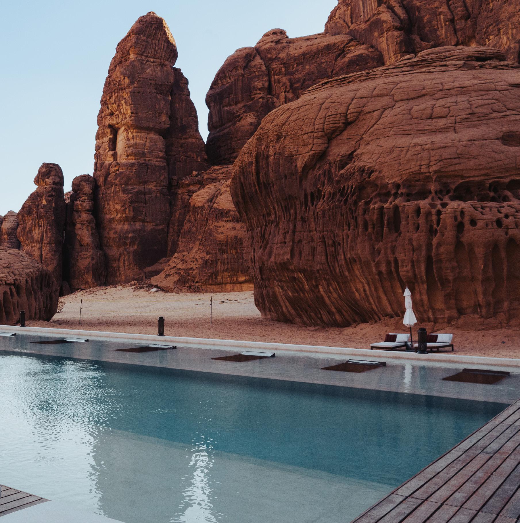 Voordat de stad verlaten wordt, nemen we een kijkje bij de Ottoman Railway Station, dat ooit gasten ontving tot vanuit Damascus in Syrië. Ook is het heerlijk rondstruinen op de Central Market, alvorens dwars door de woestijn op weg te gaan naar het spectaculaire Al Ula. Voordat het hotel opgezocht wordt genieten we van zonsondergang bij Elephant Rock. 2 Overnachting in een canyon villa van het fraaie Habitas Resort Al Ula