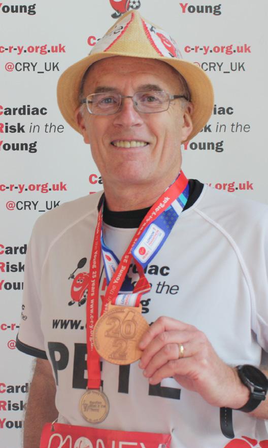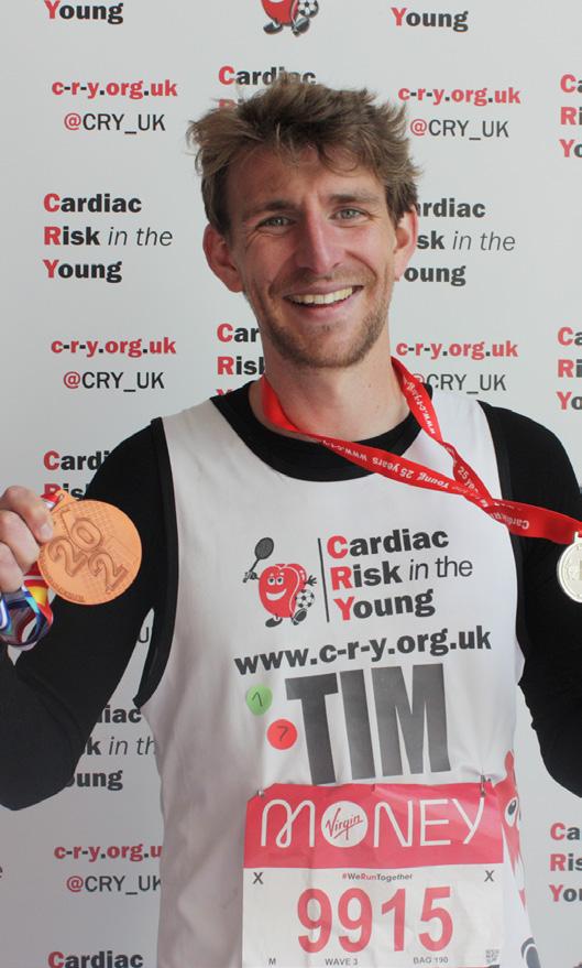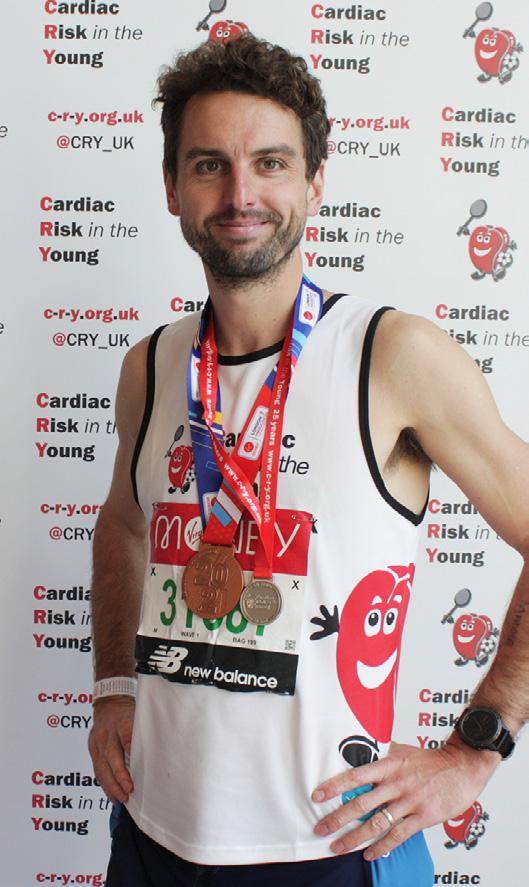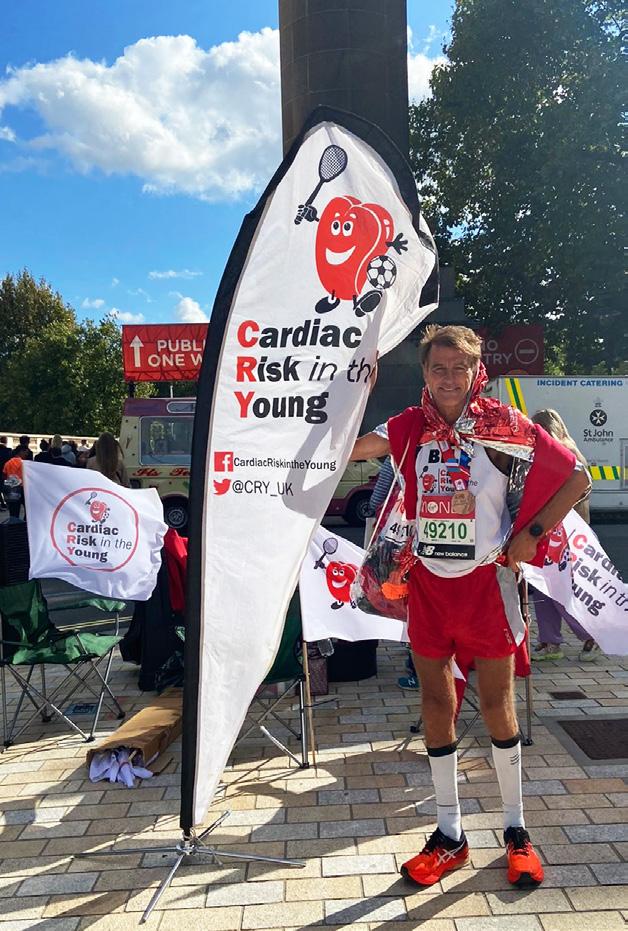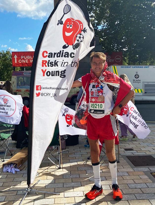 3. CRY Patron Bill Neely after completing the 2021 London Marathon. Page 16.