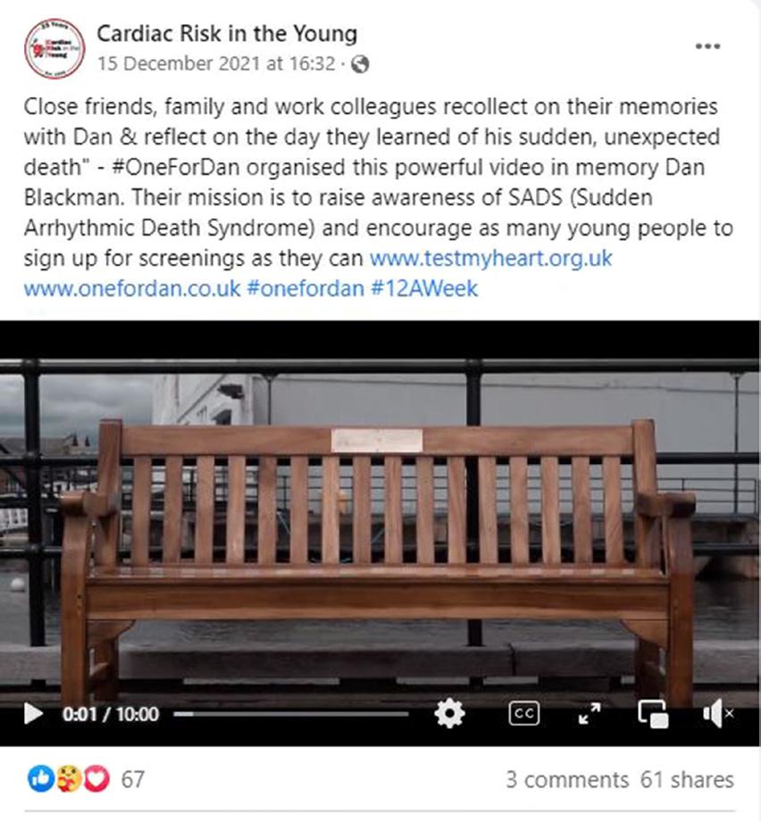 In December, the #OneForDan group who support CRY in memory of Dan Blackman released a powerful short film. His friends, family and colleagues shared their memories of Dan, and their mission is to raise awareness of SADS and encourage as many young people as possible to be