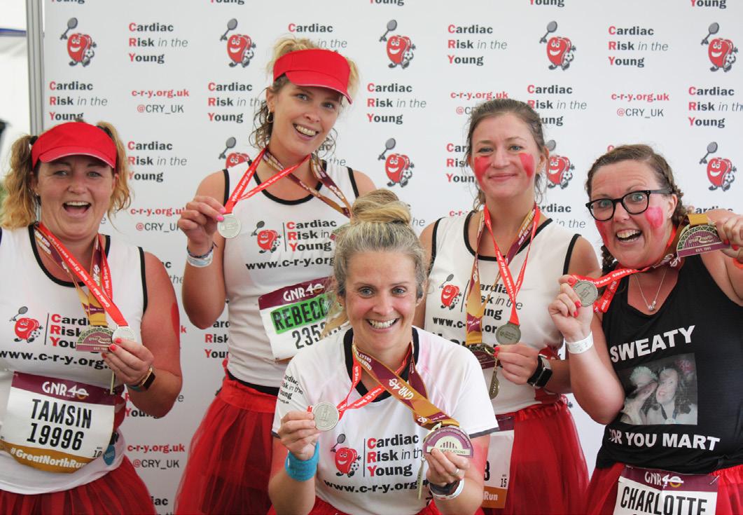 6. CRY runners after finishing the 2021 Great North Run. Page 11.