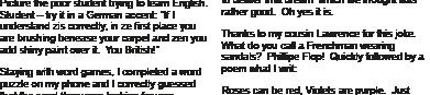 included Speech Therapy, Occupational Therapy, Physiotherapy, and Dietetics. We built on these inputs by buying in weekly private speech therapy sessions. (These continued throughout her primary and secondary years.) Yet, despite the Statement, provision was inconsistent. Speech Therapy services are managed by the NHS rather than the local education Authority. This could mean that staff holidays across the two sectors were uncoordinated and that the kids’ therapy sessions were cancelled.