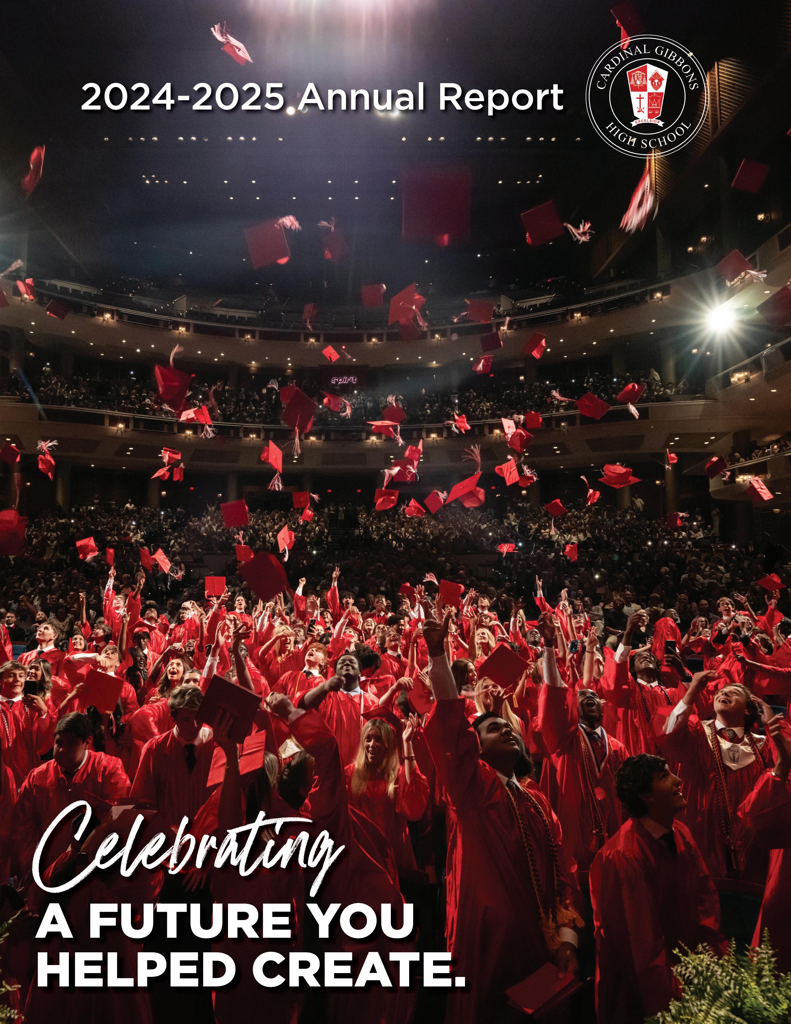 Celebrating a future you helped create begins with recognizing the lasting impact you have made on our school. I am proud to share this year’s Annual Report with deep gratitude. More than a summary of accomplishments, it reflects the strong partnership between Cardinal Gibbons and our extended community.