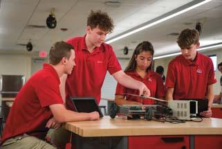 At Cardinal Gibbons, you won’t just learn about engineering, you’ll experience it— in our customized Innovation Lab. Part of the new Phil Smith Family Building, the Innovation Lab is specially designed to encourage student collaboration and facilitate practical applications of electrical, mechanical and structural engineering concepts. Enhance your critical-thinking skills as you build robots, configure computers and control circuits. Looking for even more hands-on experience? During weekly Robotics Club meetings, new and veteran club members work together to create robots for fun and for competition.