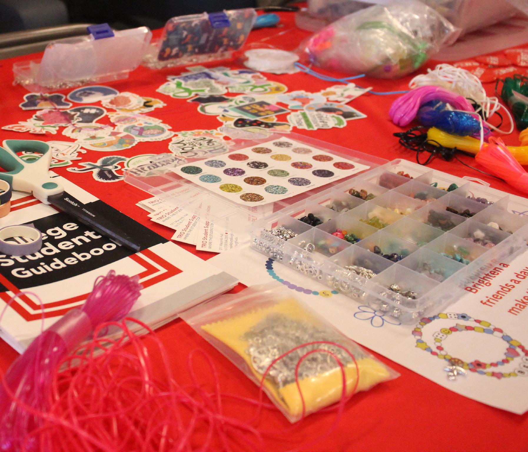 At “Strong Start,” campus clubs, offices and organizations tabled with activities, giveaways, fidget toys, coloring sheets, popcorn and cold-brew coffee. Boris, a therapy dog listed as Health and Counseling Center staff, was at the event, too. Bennett said she found that students were open to checking out the activities.