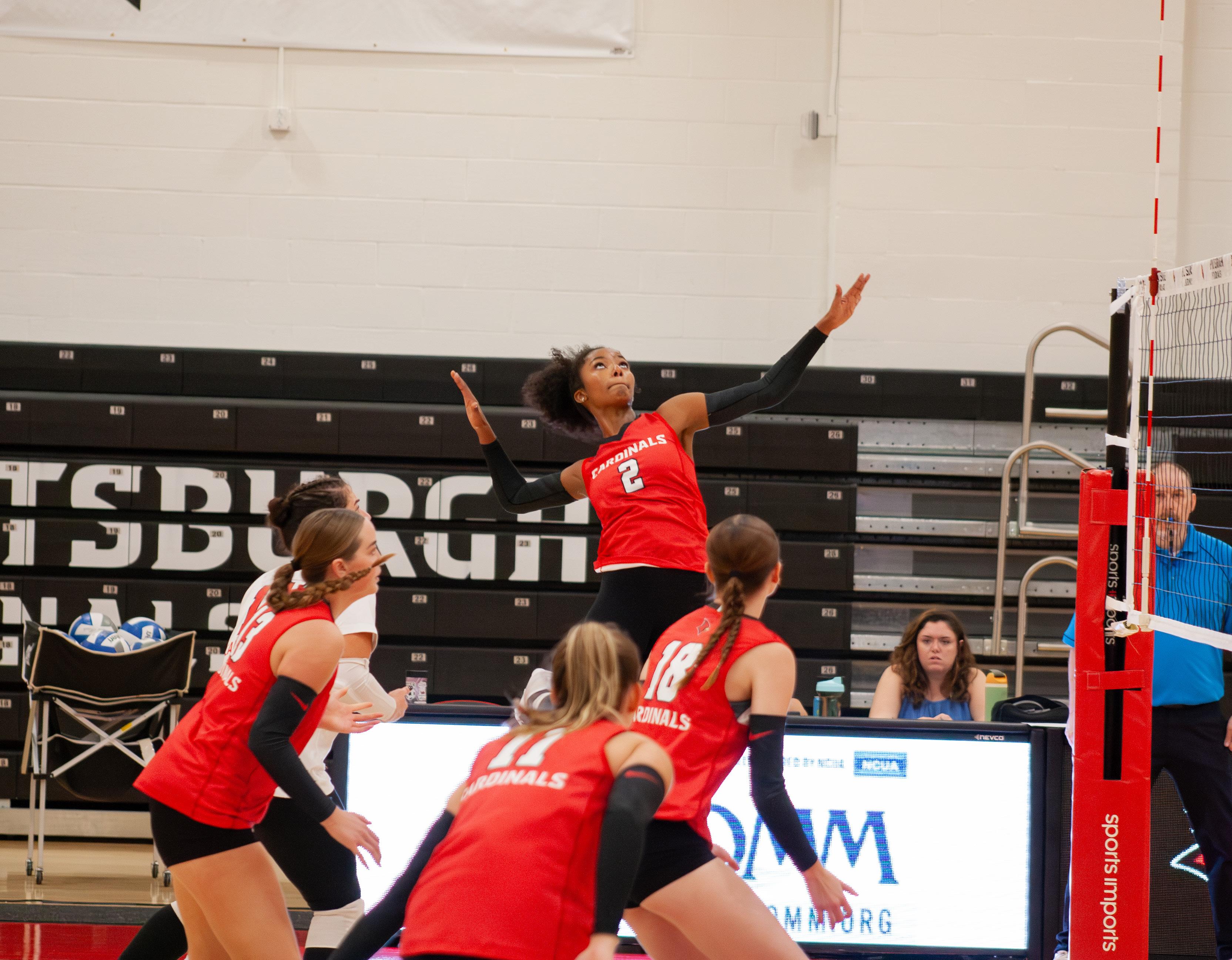 In the second set the Cardinals got strong offense from junior outside hitter Iris Mulvey, Ganz and Estime. The set ended in a four-point run to seal the victory 25–14.