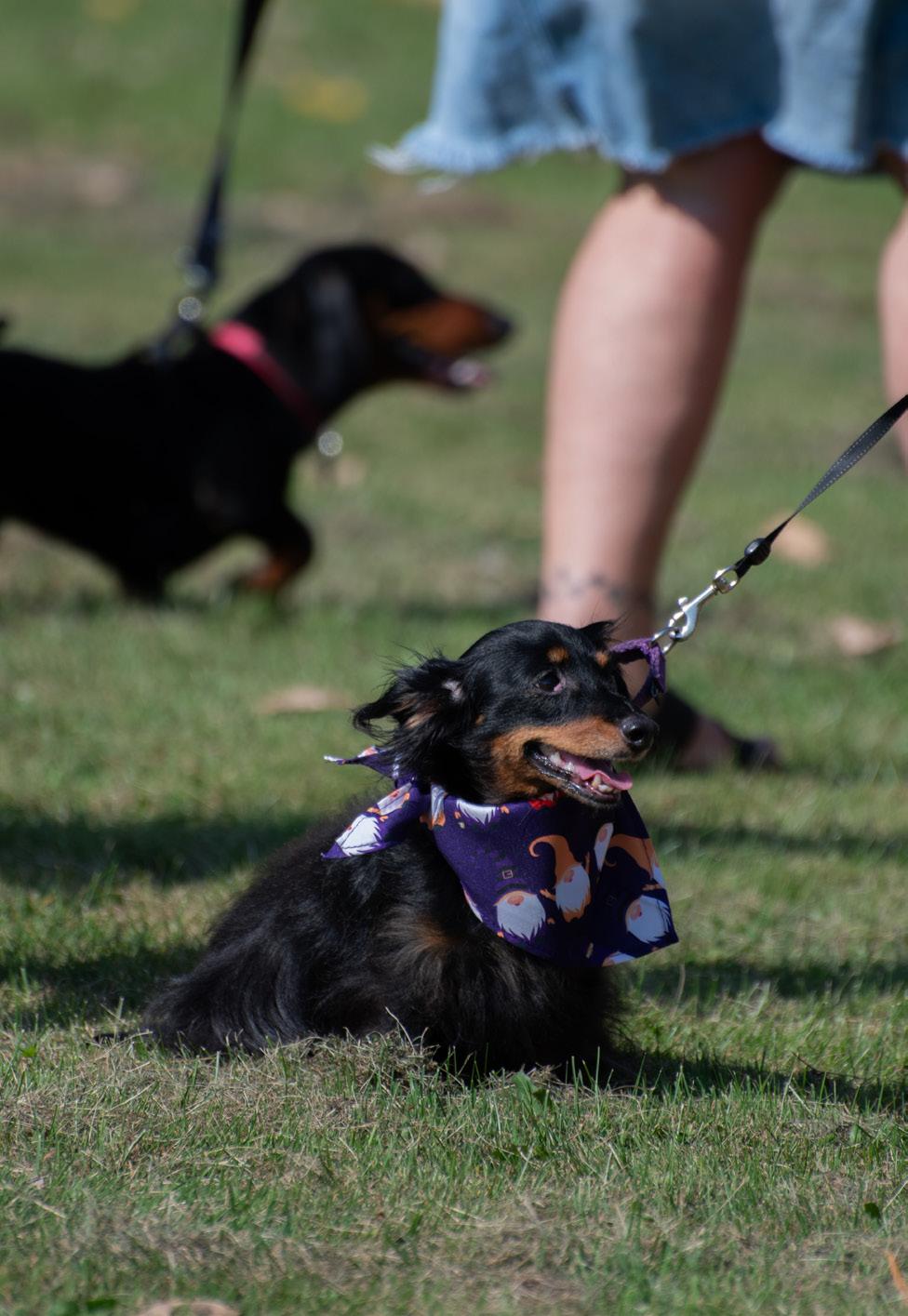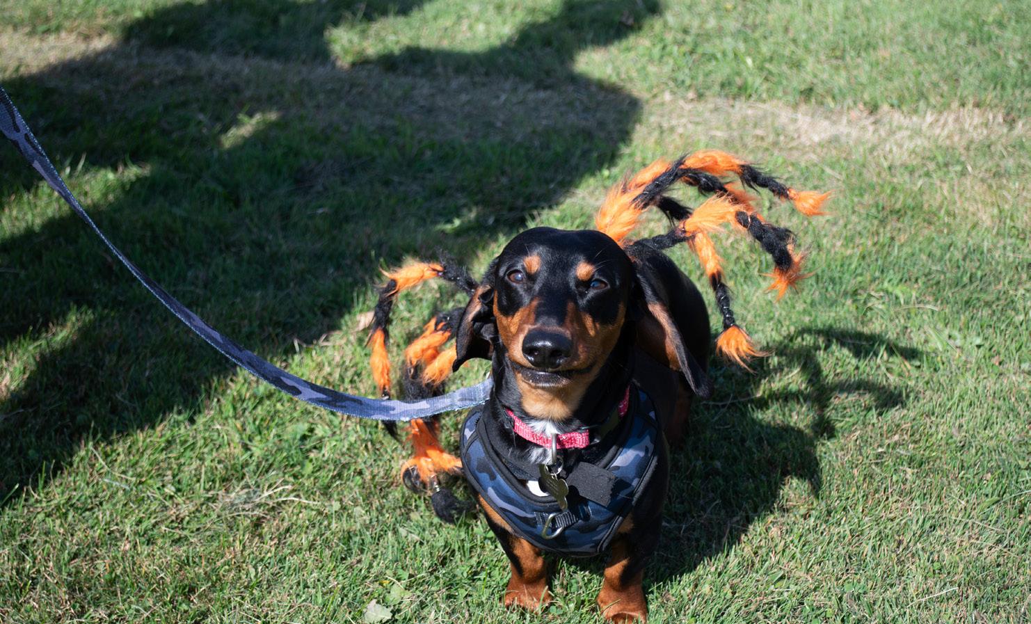 Several dogs were dressed for October festivities, like the spooky spider-dog.