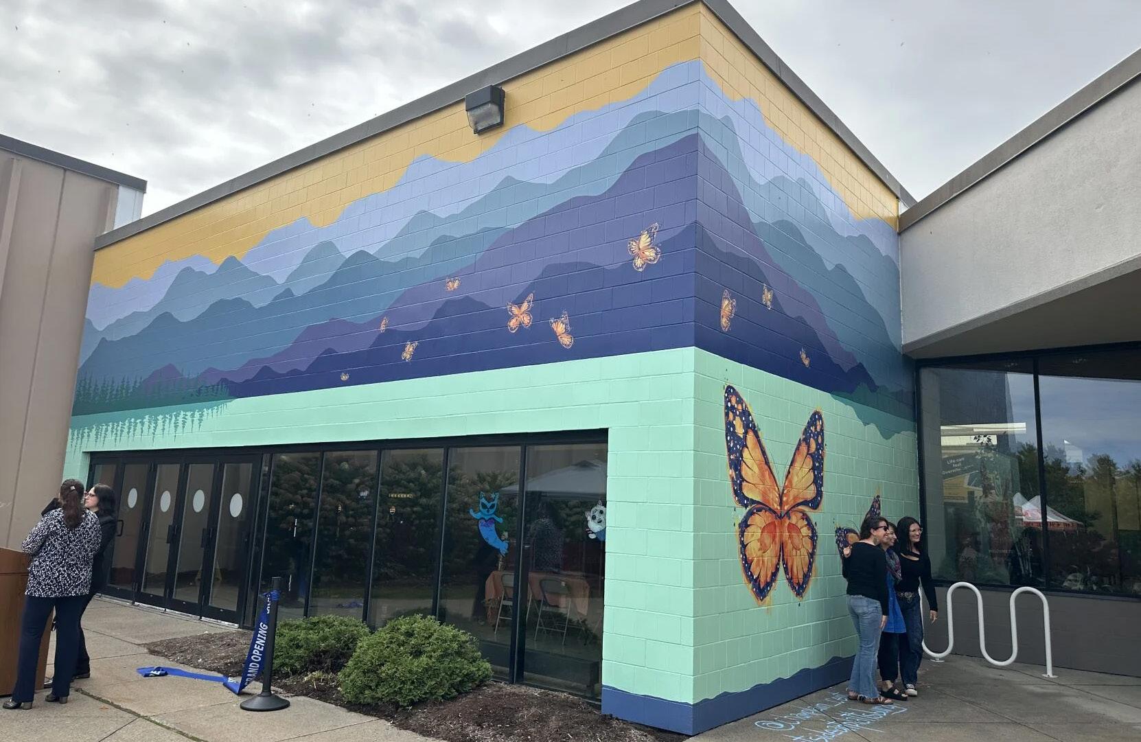 The new mural features the Adirondack mountain range, Lake Champlain and several butterflies, including an interactive “selfie wall.”