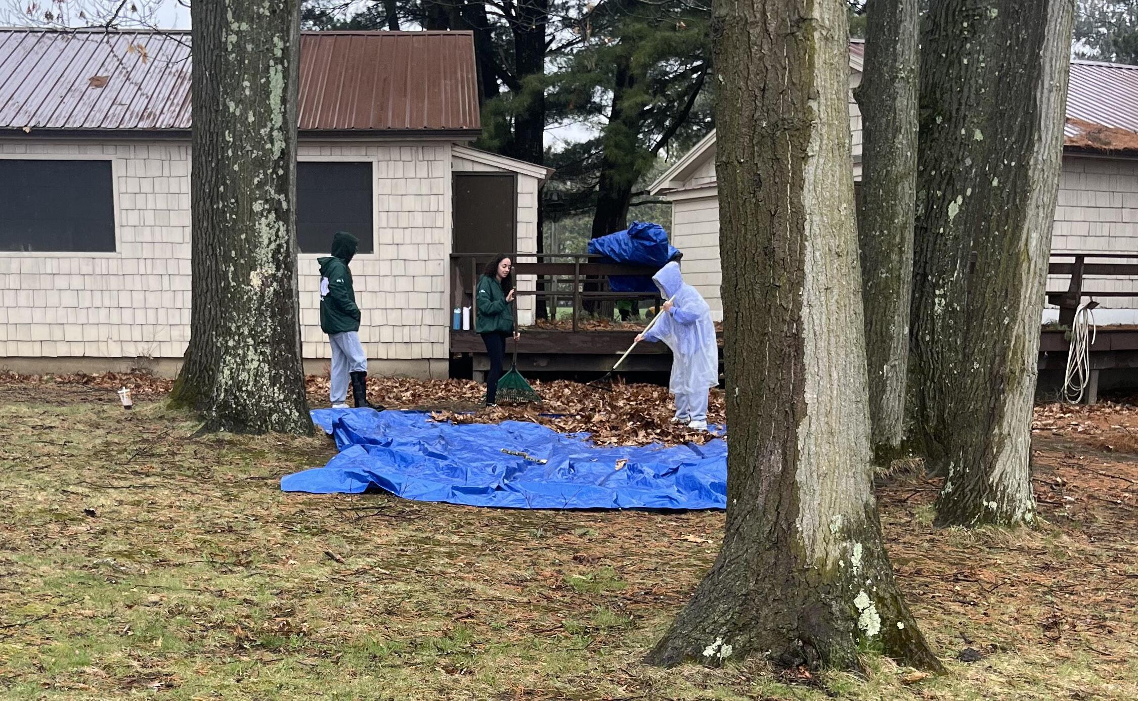 A group of volunteers celebrate a job well done with a selfie in the rain April
