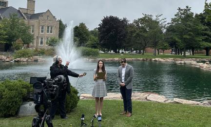 CINARA MARQUIS/Cardinal Points Students fill Amitie Plaza on Friday, Sept. 8, 2023 during the Involvement Fair. HAYDEN SADLER/Cardinal Points Nicole Malatino, president of Omicron Delta Kappa, and Robert Henn, the honor society’s vice president, commemorate 9/11 at Hawkins Pond. HAYDEN SADLER/Cardinal Points