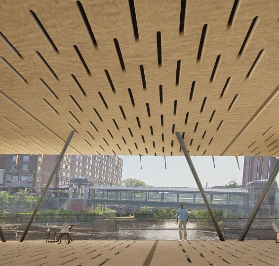 Drawing inspiration from Lowell’s industrial past, our design reimagines traditional mill construction, repurposing its style for the citiy’s contemporary needs. From the rigid brick form emerges a dynamic heavy timber inset. The building is straticically placed onsite, in order to foster unique chances for interactions between the river and the urban fabric, in turn promting connections between the community and the maker spaces. The interior program spaces intertwine in a rotation of the ideation, creation, and finalization process, encouraging natural interactions and encounters.