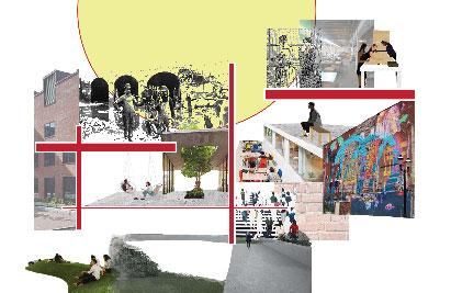Exterior Space: 6,000 sf of outdoor spaces minimum. Outdoor programming should include spaces for making, exhibition, public uses, performances, gatherings, material storage, accessible parking spaces, trash/ recycling areas, and the required service areas for loading and truck access.