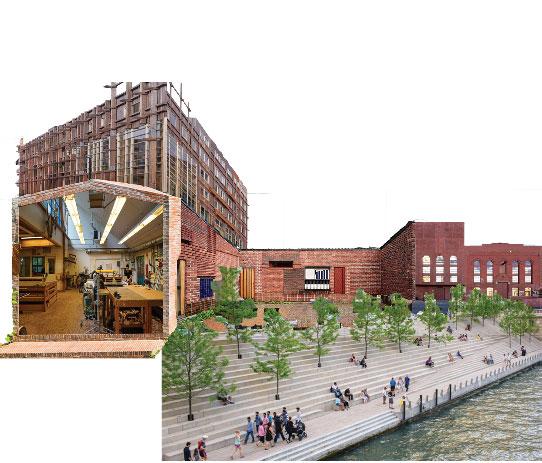 Street side storefronts wrap a courtyard to foster creativity, entrepreneurship, and artistic exploration.