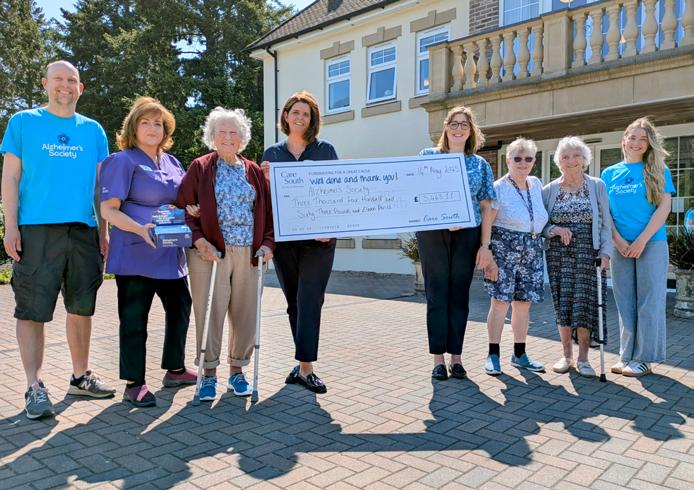 Over the past year, they’ve hosted events for families, loved ones, and the local community, including summer and Christmas fayres, fundraising open days, a spring coffee morning, and Elf Day. Residents also made forget-me-not flower badges to sell in reception. All proceeds were handed over to the charity during