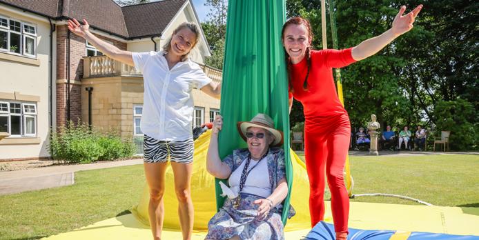 Collective, a professional theatre company who put on dementia-friendly, accessible shows. Afterwards, some of the residents jumped at the chance to have a go on a rope swing and use the aerial silks.