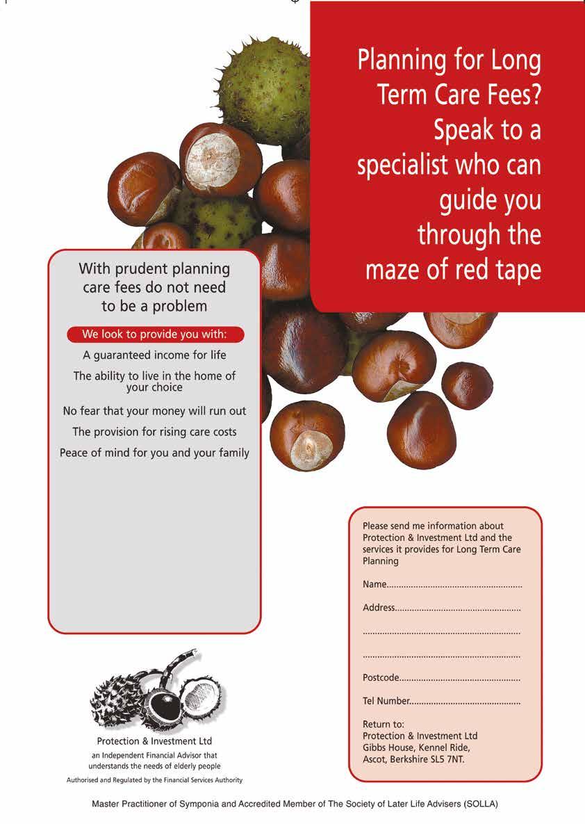 Please send me information about Protection & Investment Ltd and the services it provides for Long Term Care Planning