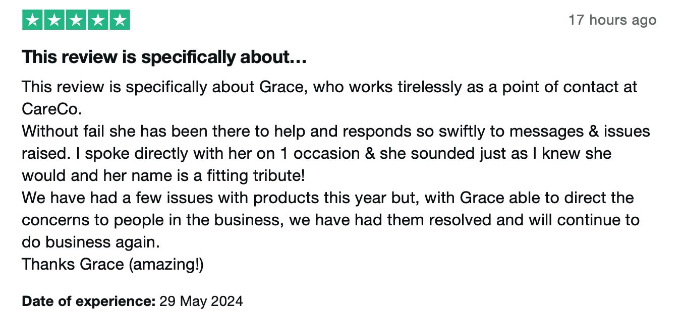 There’s nothing better than a good review from a customer to make you realise that we really are making every day a better day for the people who need our products.