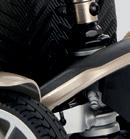 This travel scooter boasts features and performance capability you normally only see on larger pavement scooters. These include treaded pneumatic tyres and a sophisticated front suspension system that provide an unprecedentedly smooth and comfortable ride.