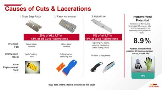 Lors des journées des collaborateurs de 2024, un safety corner a été aménagé avec une bannière montrant un monteur en tenue Carglass® et ses équipements de protection individuelle (EPI), comme des lunettes de sécurité, des gants anti-coupures, des gants en nitrile, des manches de sécurité et des chaussures de sécurité. Le safety corner a soutenu la politique Focus for Zero, qui vise à prévenir les accidents du travail. L’objectif était de sensibiliser les collaborateurs à l’importance de la sécurité et de les encourager à prendre leurs responsabilités pour eux-mêmes et leurs collègues. Un diaporama présentait des faits, des chiffres et des conseils pour travailler en toute sécurité, comme la bonne direction de coupe, le port d’EPI, l’utilisation d’outils ergonomiques, ainsi que la nécessité de boire suffisamment d’eau... Des vidéos ont également été diffusées avec des témoignages de collaborateurs victimes d’accidents du travail. Les bannières seront ensuite installées dans les filiales où se produisent de nombreux accidents du travail, afin de mettre davantage l’accent sur la sécurité. «