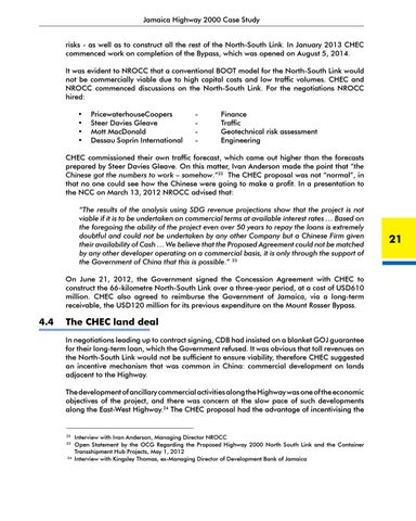 Interview with Ivan Anderson, Managing Director NROCC Open Statement by the OCG Regarding the Proposed Highway 2000 North South Link and the Container Transshipment Hub Projects, May 1, 2012 24 Interview with Kingsley Thomas, ex-Managing Director of Development Bank of Jamaica
