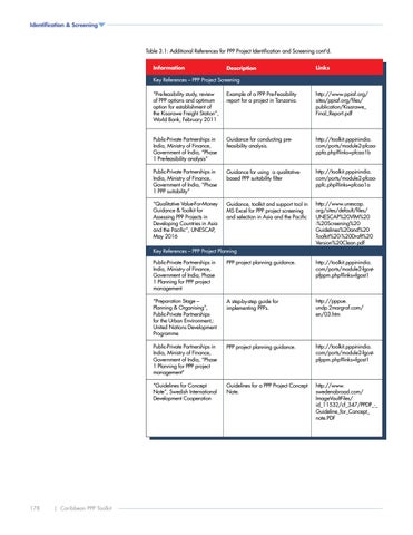 Table 3.1: Additional References for PPP Project Identification and Screening cont'd. Information