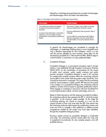 In general, the disadvantages are considered to outweigh the advantages. A single-stage bidding phase is more straightforward and is therefore appropriate for the Caribbean, which is in line with the process adopted by most countries. Some allow for the discretionary possibility for a “Best and Final Offer� (BAFO) stage to invite final bids, in case there is no clear preferred bidder.