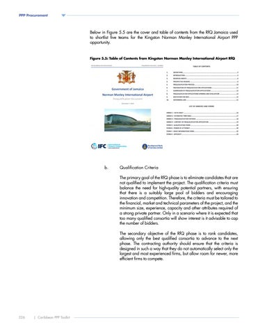 Below in Figure 5.5 are the cover and table of contents from the RfQ Jamaica used to shortlist five teams for the Kingston Norman Manley International Airport PPP opportunity.