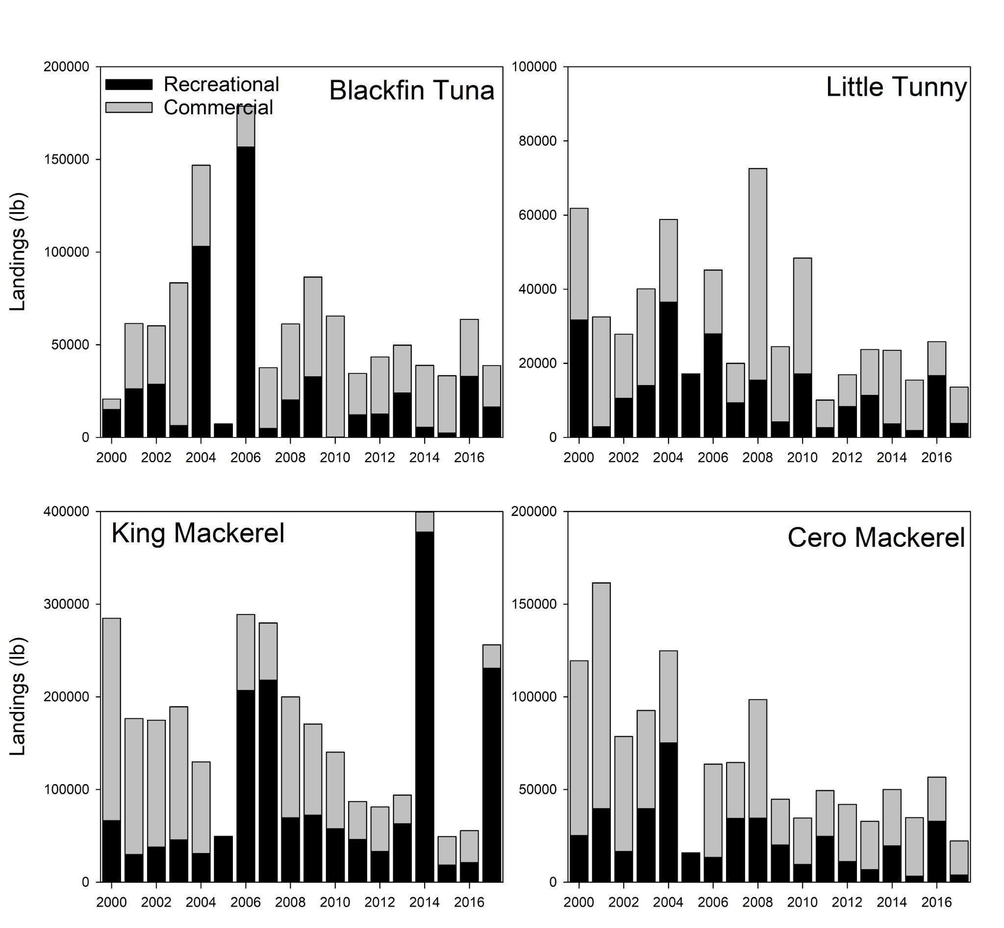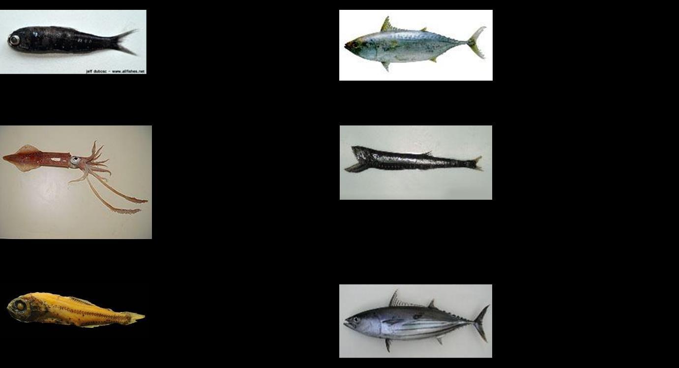 • Mackerels and Tunas (Scombridae): little tunny, blackfin tuna, king mackerel, cero mackerel, wahoo