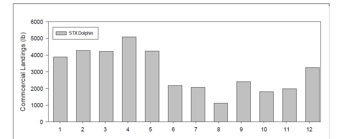 Figure 5. STT/STJ Dolphin Average monthly landings from 2012-2024.