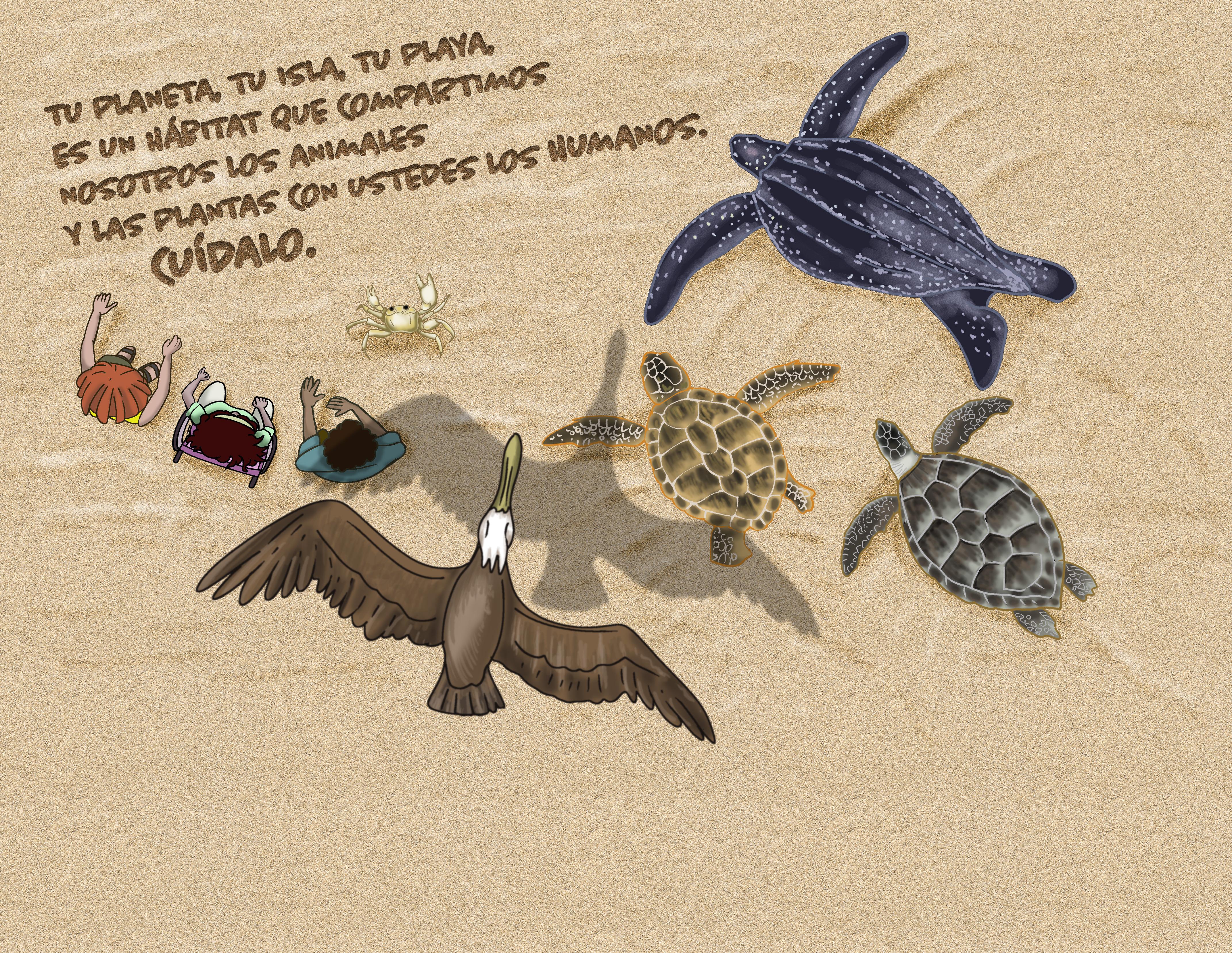 Tin ya finalizaba su escrito en la arena, mientras dentro del agua los residentes le daban ánimo. Peli volando desde los aires junto con Cobi animaban a Tin. Al finalizar su marca en la arena, ya toda cansada y agotada, Tin había logrado escribir aquel mensaje que deseaba llevar a los humanos… “Tu Planeta, tu Isla, tu playa, es un hábitat que compartimos nosotros los animales y las plantas con ustedes los humanos. Cuídalo” Desde los aires Peli celebraba leer tan hermoso mensaje. Los niños se acercaron a la arena y al leer el mensaje sus ojos se llenaron de lágrimas. Sabían que por primera vez sus amigos los animales les estaban pidiendo ayuda. “Quieren que los ayudemos, tenemos que pasar este mensaje” –dijo José “Tenemos que hacerlo ya” – en señas respondió Mariana. 23